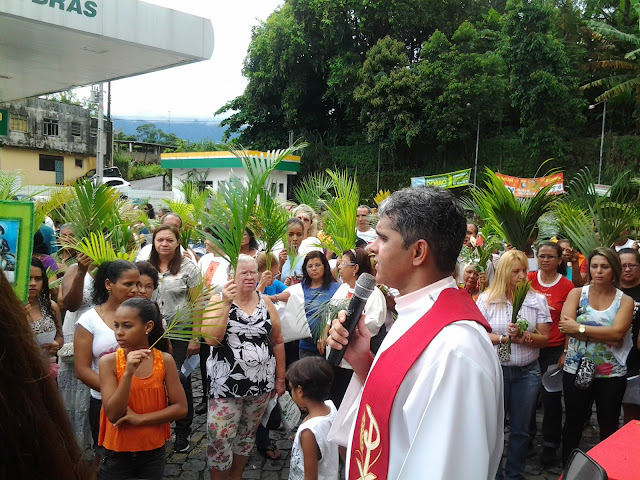 Os Fiéis animados percorreram todo o trajeto entoando Cantos e orações sendo animados a todo instante pelo Pároco Padre Cícero, com a chegada da procissão na Igreja Matriz deu-se inicio a Santa Missa.